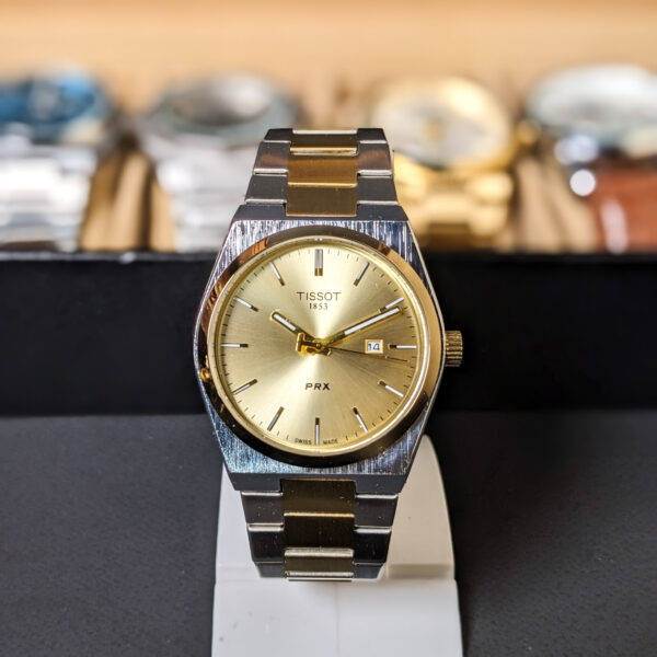 The Tissot 1853 Quartz Watch combines traditional elegance with modern simplicity. This exquisite timepiece features a polished two-tone stainless steel bracelet with gold accents, creating a refined yet understated look. The clean, white dial is adorned with bold gold hands and markers and includes a practical date display. Precision is delivered through its reliable quartz movement, making this watch a perfect choice for those who appreciate both style and functionality.